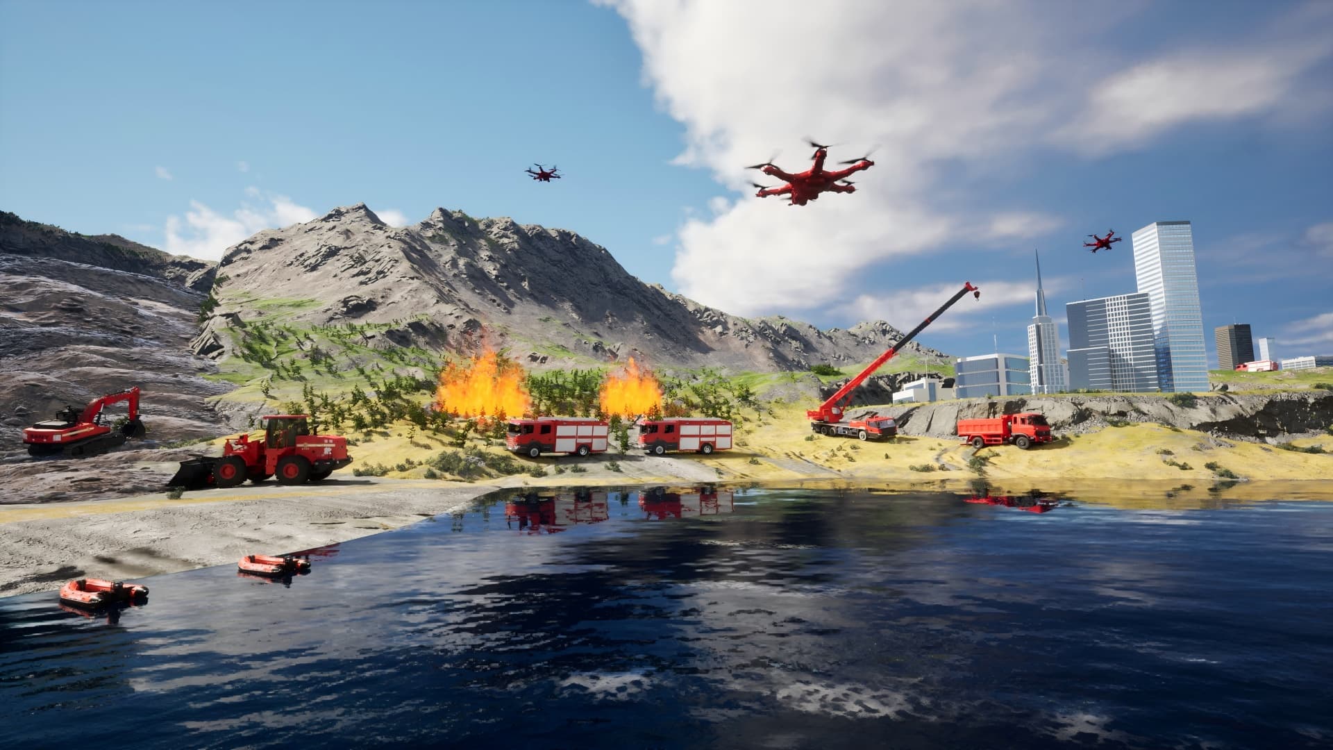 展的痛點,碩博提供工程機械仿真整套解決方案,操作場景、訓練科?、顯?效果